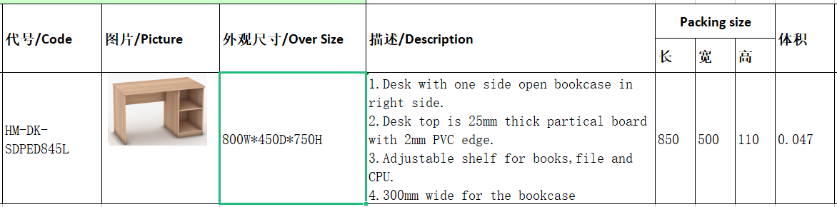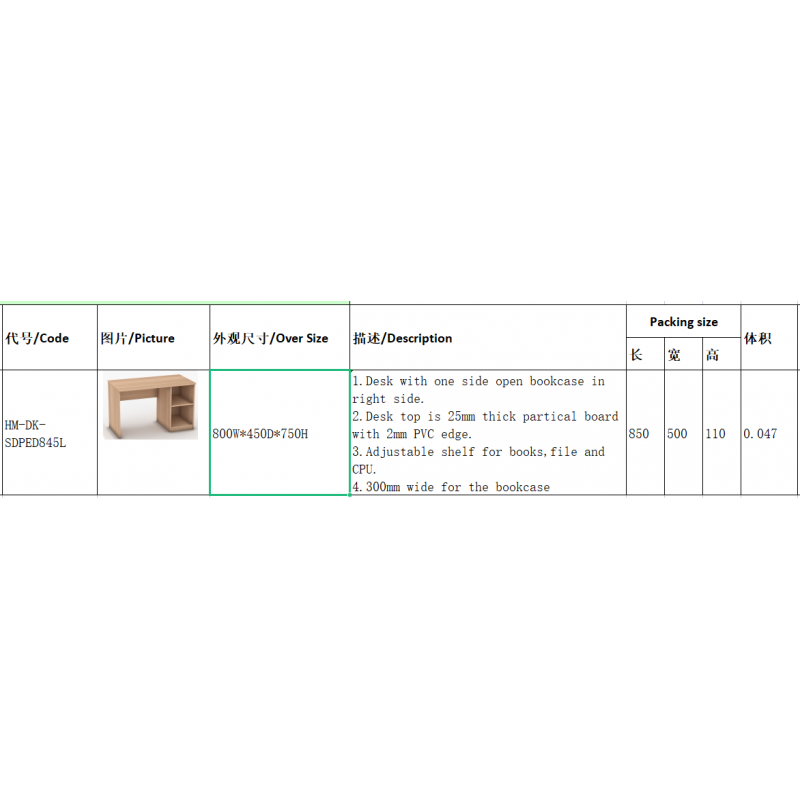 1.Desk with one side open bookcase in right side.