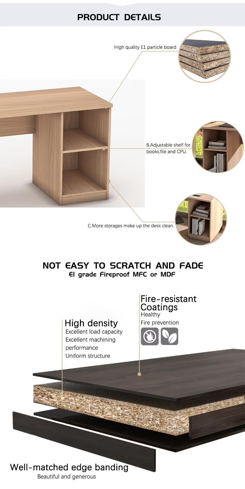 2.Desk top is partical board with PVC edge.