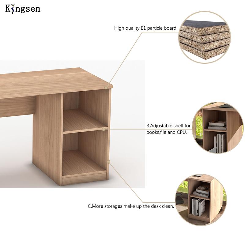 Office desk with one side open bookcase in right side Adjustable shelf for books file and CPU